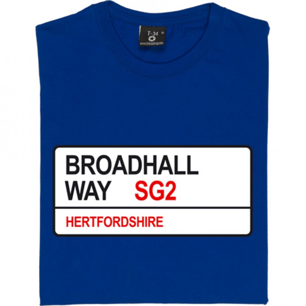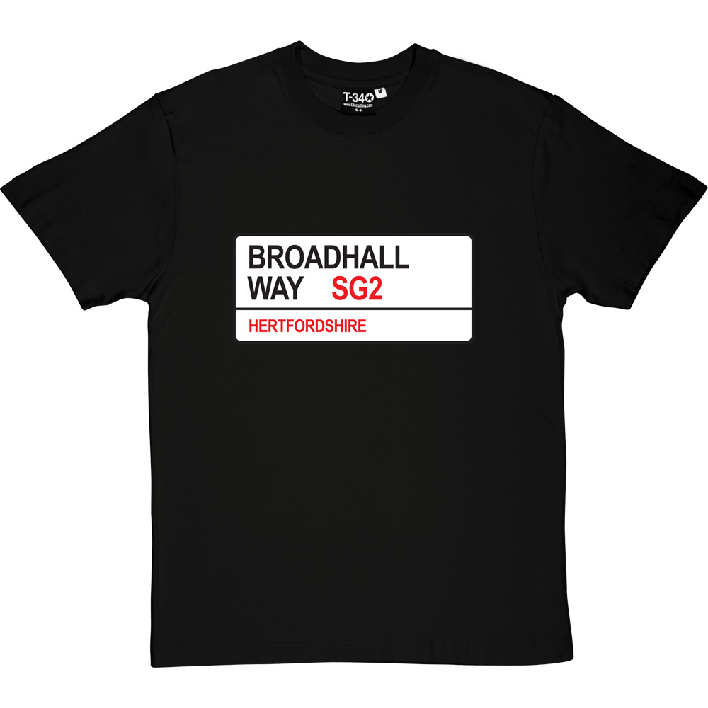 Stevenage FC: Broadhall Way SG2 Road Sign T-Shirt